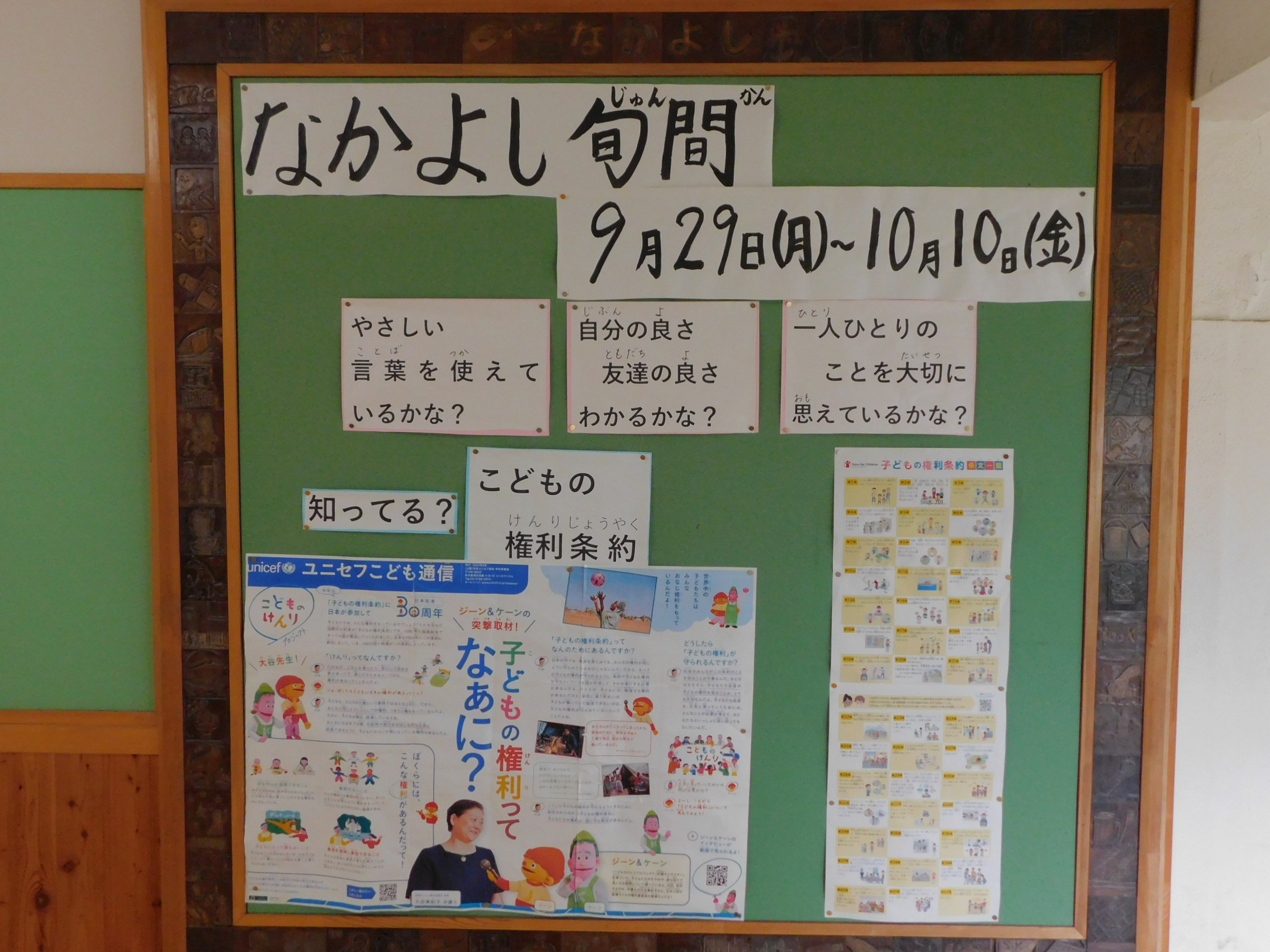 9/29から10/10までの2週間、学校では「なかよし旬間」として、差別やいじめについて考える機会としています。