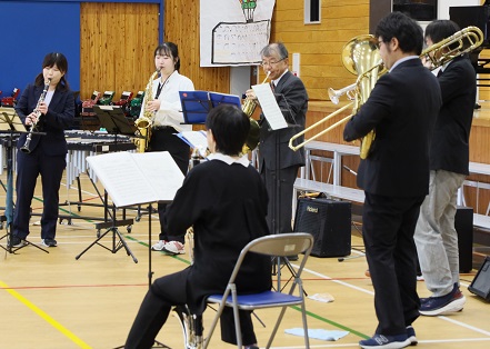 金管バンドと合唱団の発表。日々の地道な練習の積み重ねがステージで輝きます!!
