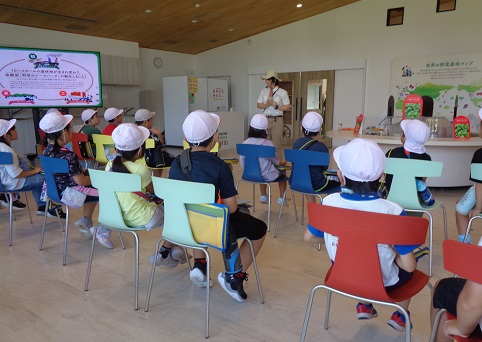 つづいて2年生は、バスに乗って富士見カゴメ工場野菜生活ファームへ行きました。
