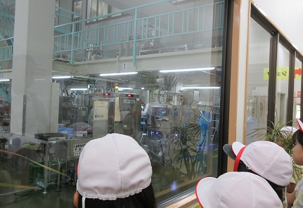 工場で商品がが出てくる様子を見学したり、タブレットを使った学習をしたりしました。