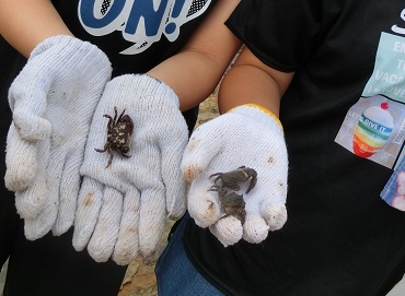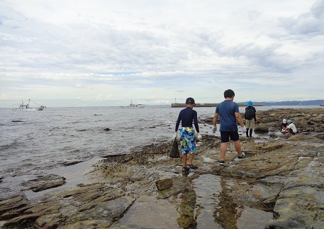 日間賀島に到着したら、まずはクラスごとにひもの作りと磯採集。