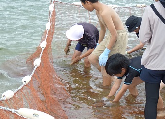 海へ出て魚つかみや砂浜遊び。まだまだ暑い日だったので、飛び込んで海を満喫しました!